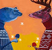 Acrylic painted illustration of a wintry ping pong match between species and their jumpers.